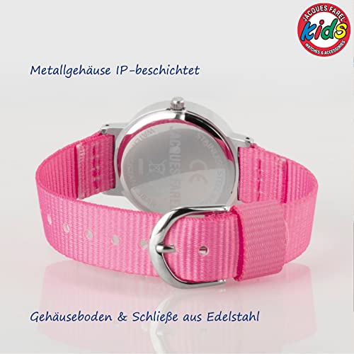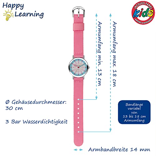 JACQUES FAREL Happy Learning Kinder-Armbanduhr Lernuhr Mädchen Analog Quarz Metall Textilband KOP 04