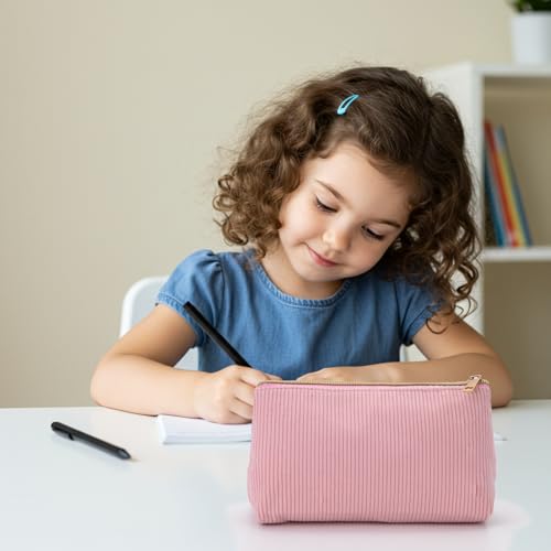 JEFURE Federmäppchen, Mäppchen Cord-Stoff, Großes Fassungsvermögen Schlampermäppchen, Schüttelpenal, Stiftemäppchen für Schule, Büro, Faulenzermäppchen (Rosa)