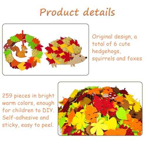 JOYEASE Herbst Basteln Kinder Set, 259 Stück Filz Bastelset Herbst mit Herbstkranz Igel Eichhörnchen Fuchs Herbstblätter, Kreative Geschenke für Kinder zur Herbstdeko