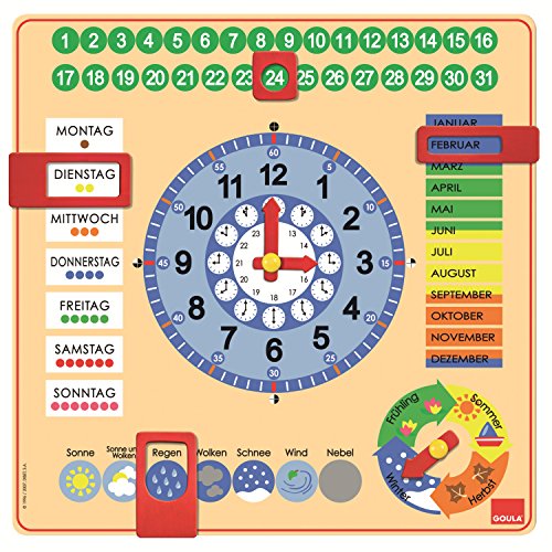 • SPIELERISCH LERNEN: Die kindgerechte Kalenderuhr von Goula bringt Kinder ab 3 Jahren nicht nur Spaß, sondern fördert auch Geschicklichkeit, Konzentration und logisches Denken