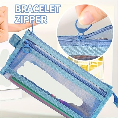 Kariertes Netz-Federmäppchen mit Griff und Reißverschluss, transparent, doppellagig, Federmäppchen, Make-up-Tasche, Schreibwaren-Aufbewahrungstasche, gelb, Einheitsgröße