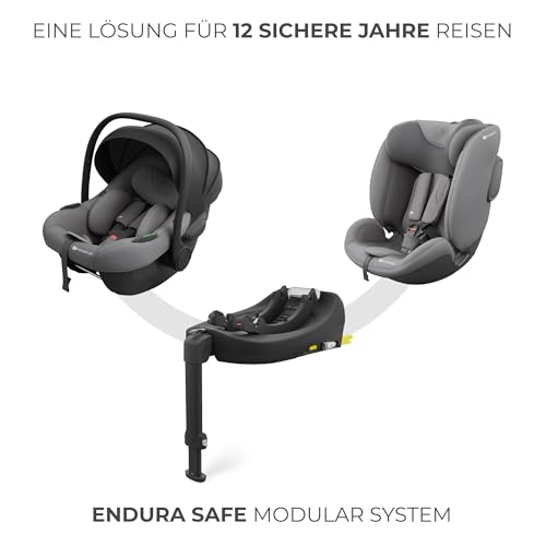 KINDERKRAFT ENDURA SAFE MODULAR SYSTEM, 3in1, für Kinder und Säuglinge, Autokindersitz, drehbare Basis (90°), ultraleicht (3,2 kg), Premium-Polsterung, Kopfschutzsystem, Grau