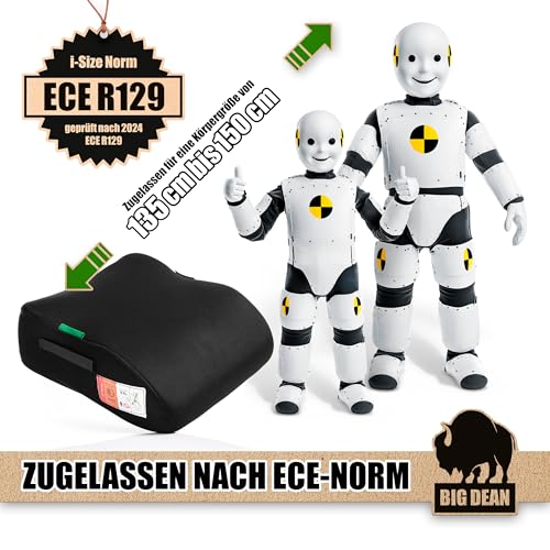 Kindersitzerhöhung nach neuster i-Size Norm R129 Schwarz Sitzerhöhung (135-150cm) Kinder Auto BigDean
