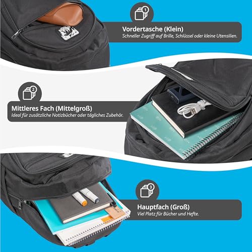 • ROBUSTE REISSVERSCHLÜSSE UND WASSERABWEISEND = Der Schulrucksack ist mit hochwertigen, leichtgängigen Reißverschlüssen ausgestattet und besteht aus wasserabweisendem Material, das Bücher und Hefte zuverlässig vor Regen schützt und den Rucksack langlebig macht.
