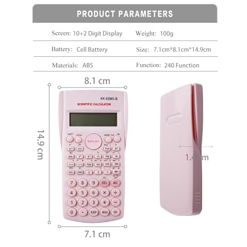 KK-82MS-D Tragbarer wissenschaftlicher Taschenrechner mit 240 Funktionen, zweizeiliges Display für Schulbedarf, Studenten, Lehrer, Geschäft, Büro, Zuhause (Rosa)