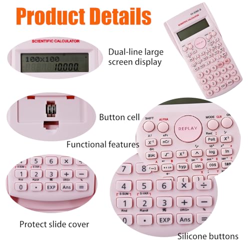 • 【Aufmerksames Design】Dieser wissenschaftliche Taschenrechner verfügt über eine solide Schiebeschutzabdeckung zum Schutz von Tasten und Gerätekörpern; Die Taste ist aus Kunststoffmaterial, weich und leicht zu tippen, und die digitale Schrift ist klar. Unsere funktionalen Taschenrechner sind mit Batterien ausgestattet, sodass Sie die Batterien vor der Bestellung nicht vorbereiten müssen.