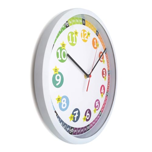 • Kinder Lernuhr: Uhrzeit lesen lernen macht mit dieser Wanduhr Spaß. Spielerisch wird die Uhr im 12 – und 24 Stunden Format gelesen