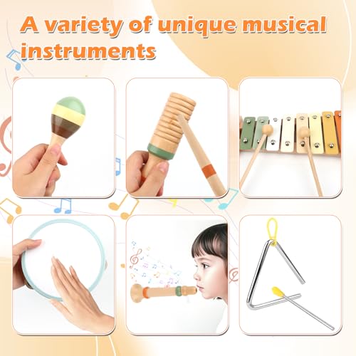 • Musikinstrumente für Kinder ab 3 Jahren: Mit Kindermusikinstrumenten wie Xylophon, Triangel, Maracas, Tamburin, Klanghölzern und Klarinette kann Ihr Kind Tonhöhe, Lautstärke und Rhythmus anhand verschiedener Instrumente erkunden. Die reichen Töne können Ihrem Kind helfen, seine Sensibilität für Musik zu verbessern.