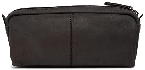 LEABAGS Leder Federmäppchen I Große Echtleder Federmappe I Federtasche für Beruf Uni Schule I Schlampermäppchen I Stiftetui I Stiftmappe I Ledermäppchen I Nature Schwarz