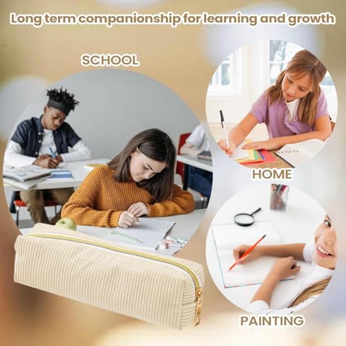 LearnLyrics Federmäppchen mit großer Kapazität – ästhetisches Federmäppchen | Bürotasche Uni aus Königsseil, für Schüler, Stifte, Radiergummi, Lineal, Marker, Notizbuch, Cremefarben, Se référer au