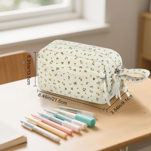 LEDAOU Stiftetasche, Große Kapazität Federmäppchen mit Reißverschluss, Schulmaterial für Teenager Mädchen (Beige kleine Blume 92)