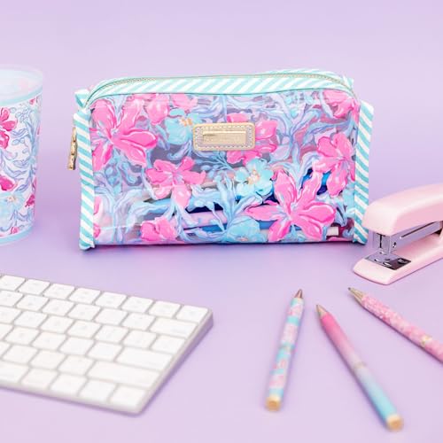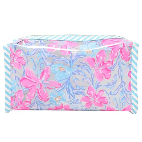 Lilly Pulitzer PVC-Reißverschlusstasche, niedliches Federmäppchen für Erwachsene, Reise-Kulturbeutel, kleine Tasche für Zubehör, Make-up oder Toilettenartikel, Beachside Haven