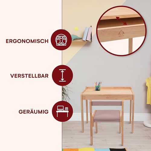 Livonir Kids Tisch Stuhl Set – Natürlicher Holzschreibtisch, Kinderschreibtisch und Stuhl Set für Zuhause und Schule, Kinderzimmermöbel – Rosa & Natürliches Braun, drehstuhl Kinder