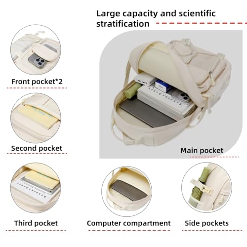 Lmwzh schulrucksack teenager schulranzen jungen laptop rucksack Mädchen wasserdicht schultasche(Beige)
