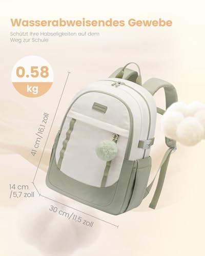 LOVEVOOK Schulrucksack Mädchen Teenager, 15,6 Zoll Laptop Rucksack Damen Leichter School Bag Schultasche mit Plüschanhänger, Lässig Groß Schulranzen für Schule Mittelschule