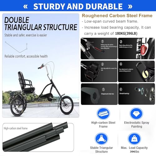 • Geeignete Körpergröße: Das dreirädrige Dreirad ist für Fahrer mit einer Körpergröße von 140 cm bis 175 cm geeignet und trägt ein Gesamtgewicht von Fahrer und Ladung bis zu 180 kg. Bitte stellen Sie vor dem Kauf sicher, dass die Größe passt.