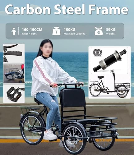 • Geeignet für Fahrer: Dieses Dreirad ist für Fahrer mit einer Körpergröße von 1,57 m bis 1,75 m geeignet und trägt ein Gesamtgewicht von Fahrer und Ladung bis zu 150 kg. Dank des höhenverstellbaren Sitzes und Lenkers finden Sie ganz einfach die optimale Sitzhöhe für Erwachsene unterschiedlicher Größe.