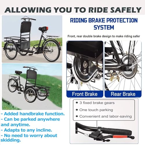 LSQXSS Dreirad mit umgedrehten Pedalen und Frontkorb, Mobilitätsdreirad für Senioren und Erwachsene, DREI Feste Bremsen, 3-Rad-Fahrrad für Radtouren, Ausflüge und Picknicks, 19-Zoll-Speichenräder
