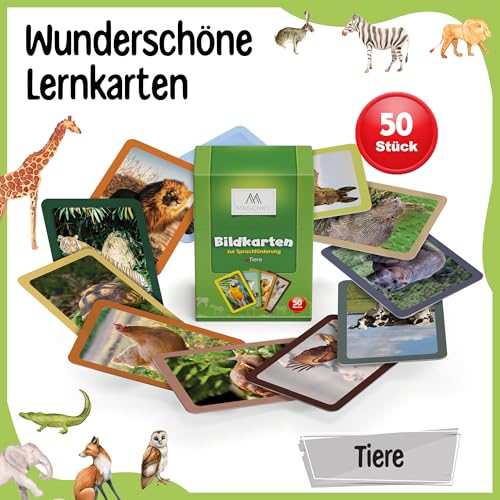 MASCHKY Lernkarten Kinder – Hochwertige Bilderkarten – Sprachförderung – Montessori – Stabile & Dicke Bildkarten – Logopädie Spiele – Zweisprachig – Tolle Geschenkidee… (Tiere)