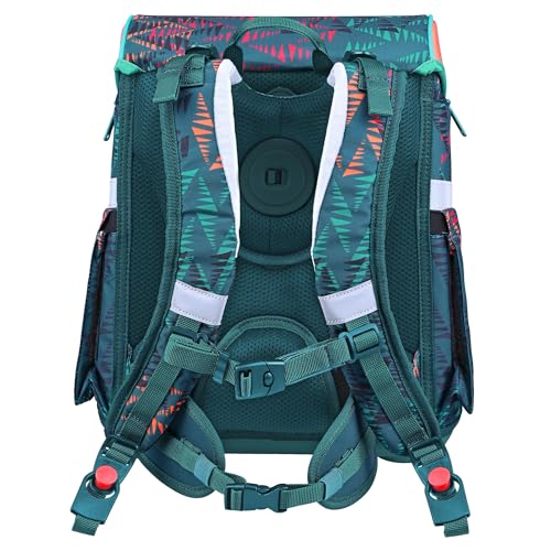 • Leichter Schulranzen ca. 950 g mit 19 L und höhenverstellbarem ClickFlex-Rückensystem für ergonomischen Sitz. Rückenschonend dank abnehmbarem Beckengurt, gepolsterten Schultergurten und ergonomischer Rückenform. Geräumiges Hauptfach mit Bücherfach plus vier Seitentaschen für Trinkflasche, Regenschirm oder Zubehör. Rundum Reflektoren, langlebiges Magnetschloss und robustes, PFC-freies Material im Bear-Design. Im Set enthalten: 2 McAddys, Motivanhänger, gefülltes Etui, Sportbeutel, Schlamperrolle, Brotdose und Trinkflasche.