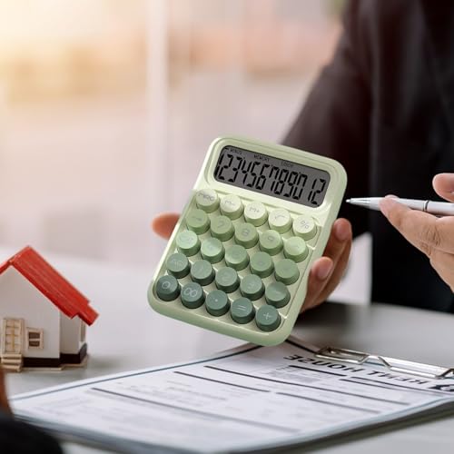 Mechanischer Rechner Mit -Schaltern – Niedlicher Tischrechner rutschfest | Ergonomischer Taschenrechner Für Damen & Herren | Mechanische Tasten Für Büro Schule Home Office, LCD Display