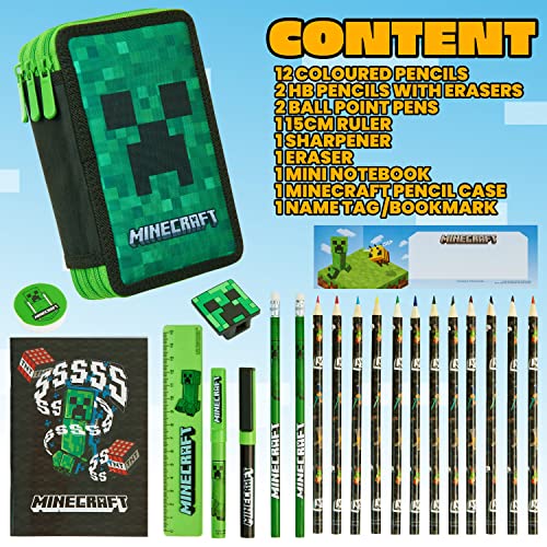 Minecraft Federmäppchen Gefüllt – Dieses coole Federmäppchen Etui Schule enthält eine Auswahl an Schreibwaren, die ideal für Schule, Hausaufgaben & kreative Projekte sind