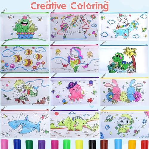 • 【Federmäppchen zum Bemalen DIY】: Dieses Set enthält 12 Federmäppchen aus Canvas für Kinder, 12 Buntstifte und 3 Diamant-Sticker. Erfüllen Sie ganz einfach die Zeichenbedürfnisse Ihres Kindes und sorgen Sie für ein tolles Bastelerlebnis