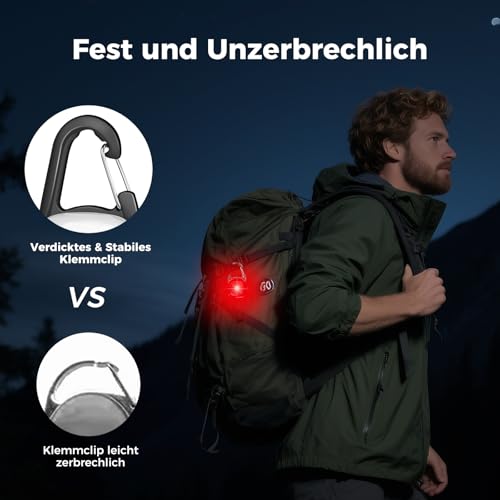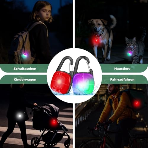 • Vielfältige Nutzungen: Das Sicherheitslicht kann als Schlüsselanhänger für schulgehende Kinder oder an Kinderwagen befestigt werden, um Kollisionen zu verhindern. Das Rucksack Licht dient als Sicherheitszeichen bei Nachtläufen, Wanderungen, Fahrradtouren und Campingausflügen und kann an Haustierhalsbändern befestigt werden, um Verlust zu vermeiden.