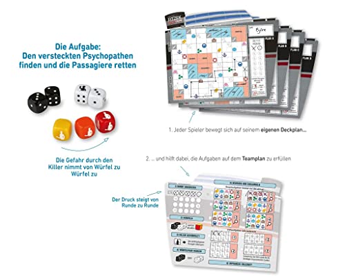 • Fesselnde Story ✓ Fitzeks Bücher hautnah erleben: Das Roll & Write Game garantiert Hochspannung wie in Fitzeks Psychothrillern und schickt die Spieler auf eine Horror-Kreuzfahrt mit einem mordenden Psychopathen