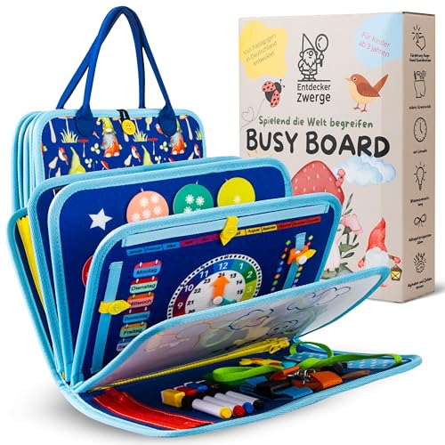 - SICHER & LANGLEBIG: Unseres Umfangreiches Activity Board besteht aus hochwertigem, verstärktem und umweltfreundlichem Filz. Es ist leicht, unglaublich robust und völlig geruchsneutral. Erfüllt Sicherheitsstandards für Kinderspielzeug. Alle Zubehörteile sind fest genäht, um Komfort und Sicherheit zu gewährleisten. Für neugierige Kleinkinder ist Busy Board ab 1 Jahr ein perfektes und dauerhaftes Geschenk.