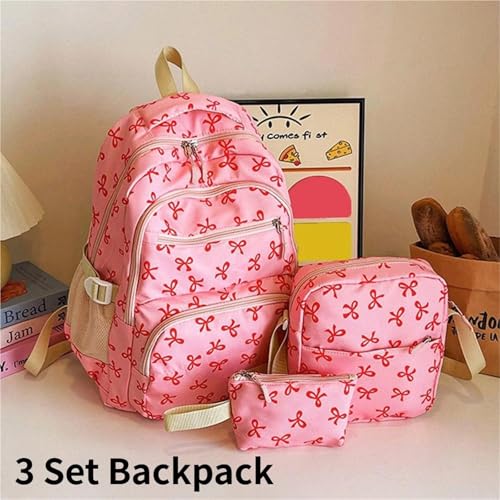 • NihaoWXM Schulrucksack Set 3 Teile/Satz Oxford Tuch Kirsche Rucksack Preppy Stil Einstellbare Laptop mit Mittagessen Tasche & Bleistift(B)