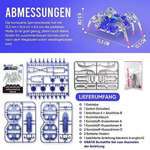 noDNA Roboter Kinder ab 8 Jahre Spinnen Roboter zum selbst zusammenbauen – Experimente für Kinder ab 8 Jahren – Spinne Spielzeug ab 8 Jahre Geschenk Junge 8 Jahre Ostergeschenke Kinder