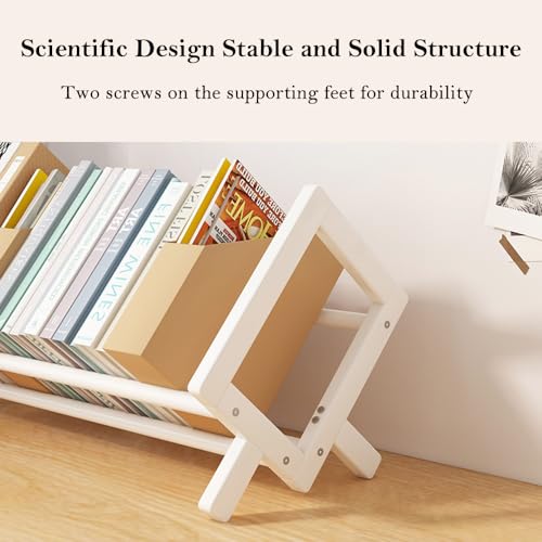 NUODWELL Bambus-Kinder-Bücherregal, Schreibtisch-Kinder-Bücherregal, Aufbewahrung, Präsentationsregal, kleiner einfacher Buch-Organizer für Kinderzimmer (Weiß, 40 cm lang)