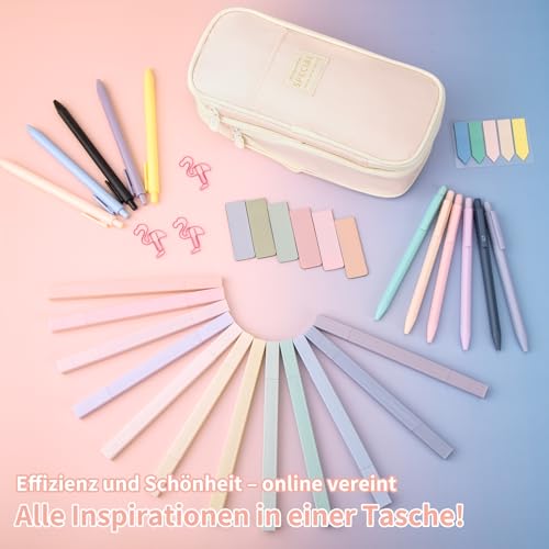 • 💡【ALL-IN-ONE Schreibwaren Set】Dieses Schulsachen alles, was Sie zum Lernen und Arbeiten benötigen: 1 faltbares süßes mäppchen, 12 pastellfarbene Doppelspitz-Textmarker, 5 Gelstifte mit 10 Nachfüllern, 6 druckbleistifte mit 0.5mm & 0.7mm Minen, 2 jelly Radiergummis, 8 charmante Cartoon-Aufkleber, 6 magnetische Lesezeichen, 5 kleine Haftnotizen und 1 quadratische Haftnotiz sowie 8 Flamingo-förmige Büroklammern. Ein multifunktionales Set für Schule und Büro!
