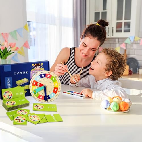 • Leicht lesbar: Klare Stunden- und Minutenmarkierungen sind leicht lesbar. Ideal für Kinder ab 3 Jahren, um zu lernen, die Zeit richtig zu lesen und einzustellen, zwischen Stunden, Minuten und Sekunden zu unterscheiden und Viertel- und Halbbegriffe richtig zu verwenden. : Die Holzuhr spart nicht nur Lernzeit, Kinder können auch Spaß an Fädelspielen haben, indem sie verschiedene Zahlenblöcke verbinden und unterschiedlich geformte Zahlenblöcke in Schlitzen anordnen