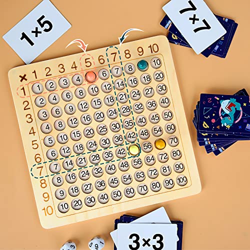 • 🧮【2 in 1 Mathe Board Game】2 in 1 Design mit einer Multiplikationstafel auf der Vorderseite und einer Additionstafel auf der Rückseite. Sie erhalten 1 2 in 1 Mathebrett aus Holz, 4 Schachfiguren, 2 Würfel, 55 Multiplikationskarten, 55 Additionskarten, 1 Multiplikationsformelblatt, 1 Whiteboard Marker.