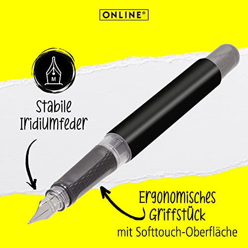 Online Füller College Black, Tinten-Füller für Rechtshänder, ergonomisches Griffstück, hochwertige Iridium-Feder medium, Standard-Tintenpatronen, inkl. Kombipatrone blau, Allergiker geeignet, 1 Stück (1er Pack)