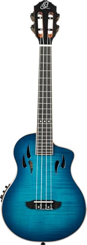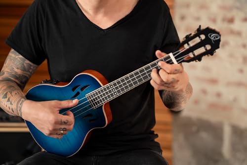 Ortega Guitars Tenor Ukulele Elektro-Akustisch – Massiver Korpus – Tourplayer Series – Inklusive Gig Bag – Geflammter Ahorn/Okoume, Blau (RTPX-U-FMA)