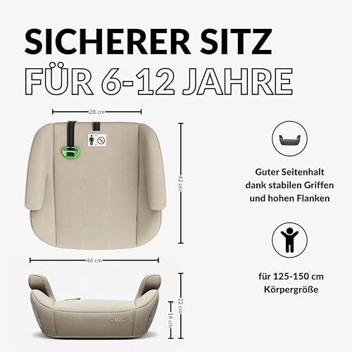 OWEN Sitzerhöhung Auto mit ISOFIX | Kindersitz mit Memory-Schaum & Wechselbezug | Für 15–36 kg (6–12 Jahre) | ECE R129 geprüft | ergonomisch & leicht | Bezug waschbar – beige