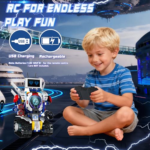 - 🤖【5 in 1 Kreativroboter Bausatz】Dieses stem-lernspielzeug unterstützt fünf frei kombinierbare formen. Enthält: bedienungsanleitung*1, farbbox*1, led-lichtröhre*1, quadratische wiederaufladbare batterie*1, bildschirm*1, fernbedienung*1, bausteine*11 beutel, aufkleber*2 bögen, aufbewahrungstasche*1. Kinder können durch kreative kombinationen verschiedene formen zusammenbauen. Lebendige lichtröhren, die um den körper gewickelt sind, schaffen eine futuristische ästhetik, während die mitgelieferte aufbewahrungstasche die organisation vereinfacht. Dieses kit fördert das räumliche vorstellungsvermögen und die praktischen fähigkeiten.