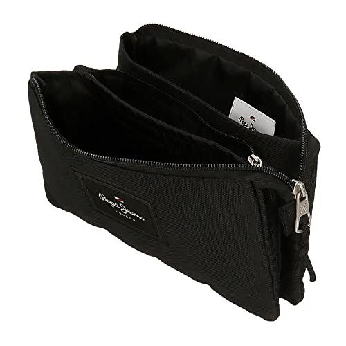 Pepe Jeans Aris Dreifach-Federmäppchen, 22 x 12 x 5 cm, Schwarz , 22x12x5 cms, Dreifach-Etui