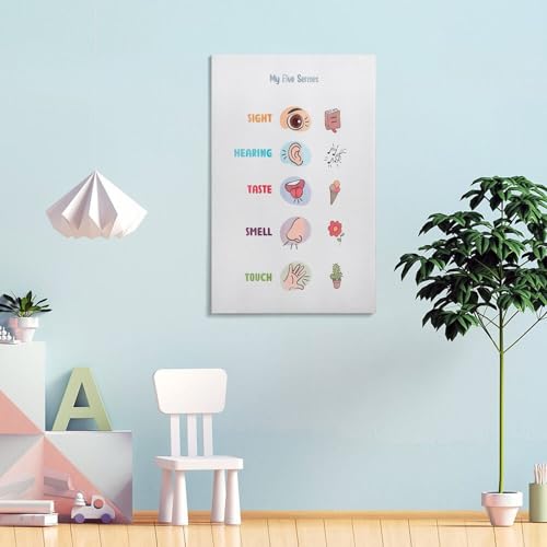 Poster mit fünf Sinnen, Bildungsposter, Vorschulposter, Spielposter, Kunst, Bildungsposter, Leinwandposter, Wandkunst, Dekordruck, Bild, Gemälde für Wohnzimmer, Schlafzimmer, Dekoration, 60 x 90 cm