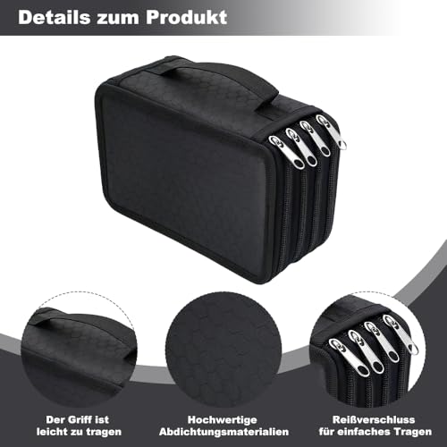 Puedno Federmäppchen Groß mit 72 Slots, Portable Mäppchen, 4 Fach Federtasche Groß mit Reißverschluss Tragegriff, Wasserdicht Federmappe für Buntstifte Marker Kugelschreiber, Schwarz