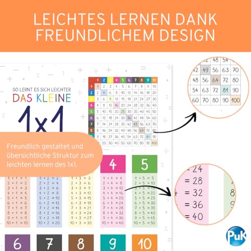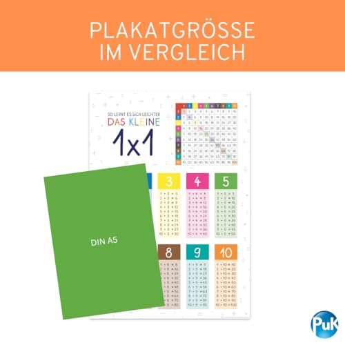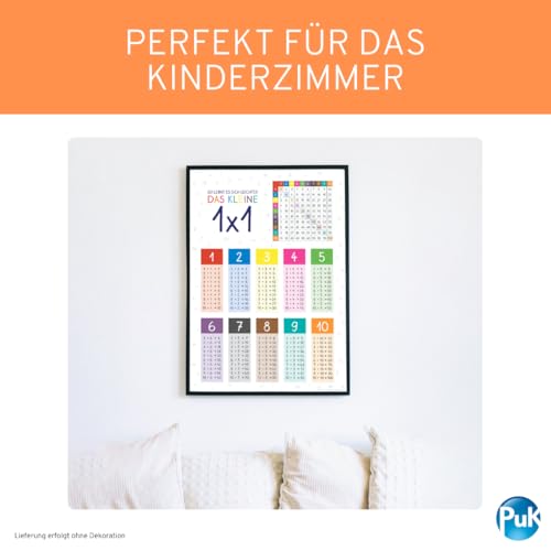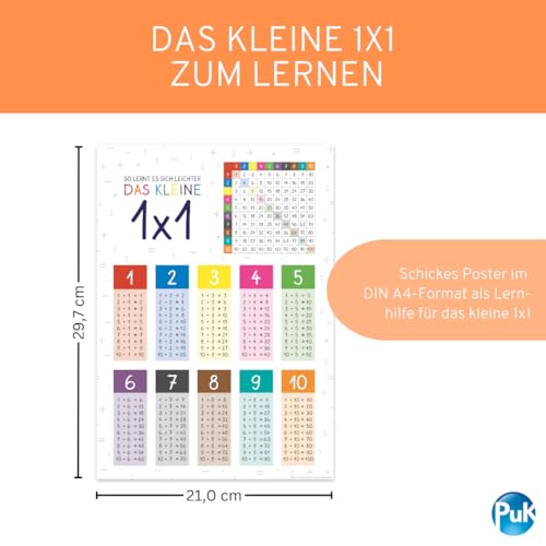 PuK Krämmer GmbH 1×1 Poster DIN A4 | Kinderzimmer Deko Bilder Einmaleins | Lernposter für Kinder | Geschenk Geburtstag Einschulung Schule | Rechnen Lernen