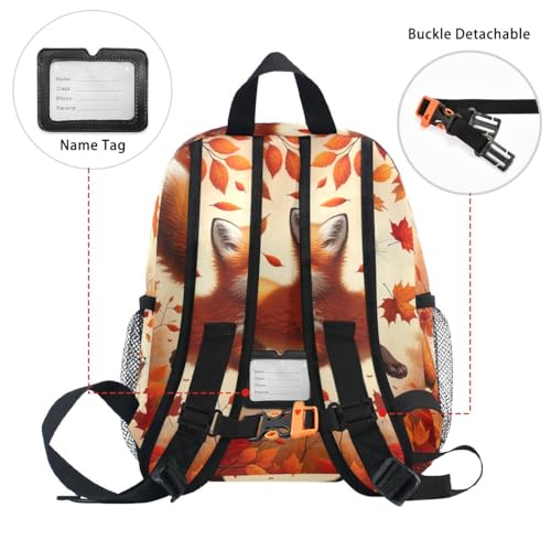 RPLIFE Herbst-geschnittener Spring-Fuchs-Rucksack für Kleinkinder, Mädchen, Jungen, Kinder, Schulrucksäcke mit Namensschild, Reiserucksack, 3–8 Jahre, Springender Fuchs im Herbstschnitt, Small