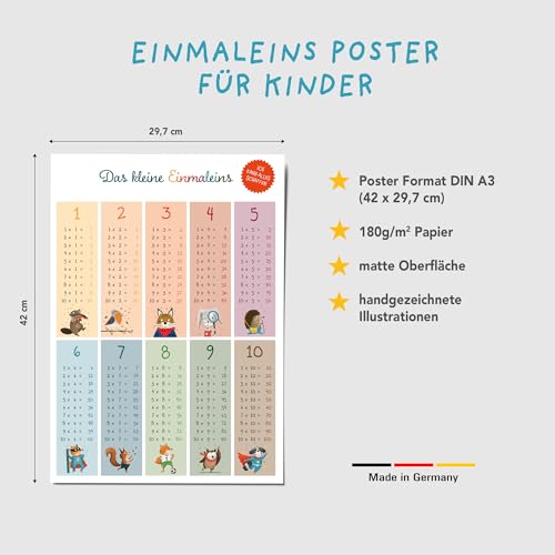 Rüsselfuchs 1×1 Poster – Das Kleine Einmaleins – Zahlenreihen 1 bis 10 – Lernposter für Kinder – Mathematik für die Grundschule – das kleine 1×1 Lernen – Zahlen Plakat – Poster DIN A3