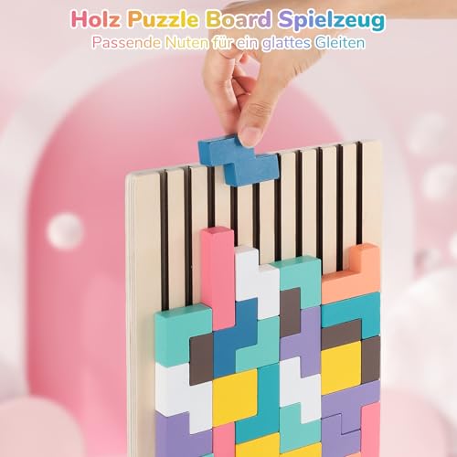 • 【Kreatives Bauspielzeug】Dieses tetris holzspiel lässt Kinder spielerisch Formen und Farben kombinieren, wodurch sie Logik, Konzentration und Farberkennung trainieren, während sie eigene kleine Türme und Muster erschaffen.