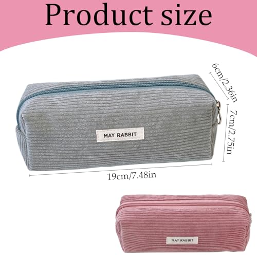 Saituo Home 2 Stück Federmäppchen Cord-Stoff (Grau+Rosa), Waschbar Stiftemäppchen, Tragbares Federmäppchen mit Reißverschluss, Pencil Case, Aesthetic Federmäppchens,für Teenager Männer und Frauen