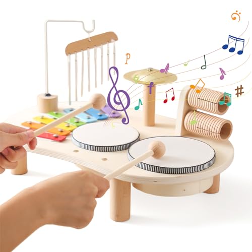 Schlagzeug Für Kinder Aus Holz, 7 In 1 Musik Kinderspielzeug, Montessori Lernspielzeug Schlagzeug Mit Xylophon, Kinder Trommel Set