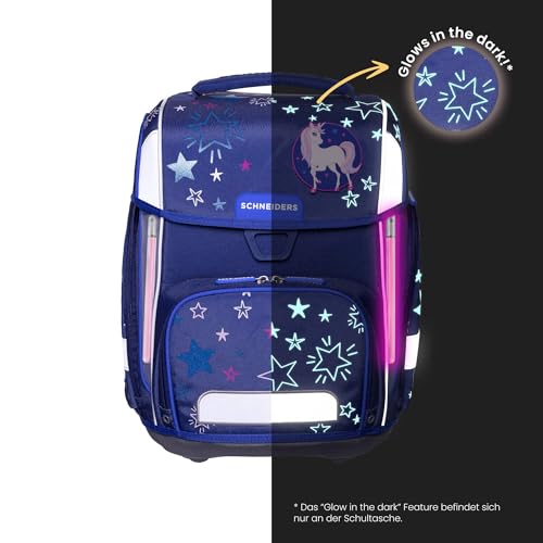 Schneiders Ergolite Schultasche Shooting Star – 9-teiliges Schulranzen Set für Mädchen – Ergonomisch, Leicht (1,2 kg), Mit LED-Leuchtstäben, Reflektoren & Zubehör – 22L Volumen